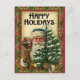 Santa för vintagejulkort innehav en julgran och presenter. Presenterar formulera, "glad helg.", Skräddarsy denna produkt för fritt!