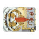 Vintage illustrerar laboratoriebilden i Science fiction futuristiska med en grupp ryska kosmonauter, forskare eller astronauter som har en middagsrast. De äter sitt flytande mjöl soppa från stora rör. Deras mat omfattar vitaminer, hormoner och kalorier! Klassisk 50-sekundersmodell för bok-sci-fi för återanslutning till tecknad.