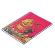 Vintageillustration futuristisk science fiction-illustration med utomjordingar och robotar. En klassisk retrodesign för serietidningar med science fiction-tema, med en äggformad robot som håller en man i sina klor. Figurerna framträder mot en starkt rosa bakgrund.