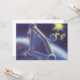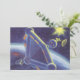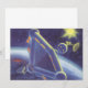Vintage illustration futuristisk yttre rymd och planeter science fiction-bild. En rymdstation som kretsar runt en planet eller måne med en ljus sol som lyser i himlen i framtiden. En klassisk 50-tals retro sci-fi-serietidningsdesign.