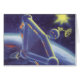 Vintage Science Fiction Kretsande Rymdstation Hälsningskort