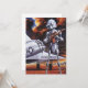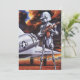 Vintage illustration futuristisk Science Fiction militär robotbild. En fientlig utomjordisk soldat som håller ett gevär och står framför ett militärflygplan eller flygplan med en stjärna. Han är på en öde planet redo att gå till krig med rök, eld och explosioner. Dags att slåss och bekämpa de onda utomjordingarna. Klassisk 50-tals retro tecknad serie sci-fi design.