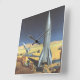 Vintage Science Fiction Ökenplanet med Raketer Fyrkantig Klocka