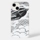 Vintage illustration futuristisk viktoriansk svart-vit science fiction transportbild. Ett rymdskepp raket som flyger genom molnen på himlen. En klassisk 50-tals retro serietidning sci-fi design för framtiden.