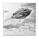 Vintage Science fiction Spaceship Rocket in Clouds Kakelplatta