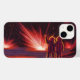 Vintageillustration futuristisk Science Fiction-bild med vänliga utomjordiska astronauter som vinkar. De befinner sig på en röd främmande planet eller måne med exploderande eldkulor som ser ut som fyrverkerier. En klassisk retro 50-tals sci-fi-serietidningsdesign.