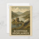 Vem som helst skulle vilja att kärlek fick det här skotska reseaffischkortet i vintage med en illustration av ett tåg och ett slott i Skottlands högländer!