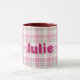 Den här söt mugg har min ursprungliga skotska plaid-design för en vintage stil och i rosa, grått och benvita tonar. Namn på framsidan kan vara personlig som önskat. Handtaget och inuti är en maronton som kompletterar teckningen. Det här är 11 uns mugg, bara den perfekt som är storlek för ditt bryggkaffe eller te - eller till och med hett choklad! Det skulle vara en underbar gåva och man kan lägga in paket med kaffe, tepåsar eller hett choklad. En annan presentidé är att lägga en liten växt i den för att göra extra speciellt för din älskade.