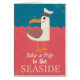 Söt tecknad på semestern poster utskrift. Reseaffisch i fiskmås.