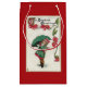 Vintage bild av en liten flicka som håller ett paraply, med meddelandet "Säsongens hälsningar", finns på både framsidan och baksidan av denna presentväska. Den här färgstarka, lilla presentpåsen är perfekt för att hålla små och små presenter för din familj och dina vänner!