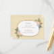 Elegant bröllopsinbjudan illustrerad med en fantasifull oval ram och akvarellblommor i persikopink, delikat gul och söt blå. Mörkgröna blad och kvistar, tillsammans med silhuetten av ett par inspirerad av vintage cameor är sammanförda med elegant script-teckensnitt. Denna design kan enkelt anpassas och bakgrunden kan ändras för att matcha din föredragna färg.