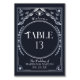 Elegant och modern bröllop-design inspirerad av ett färdkort. OBS! silver som visas i denna design är INTE äkta folie. Objekt skrivs ut exakt som de visas på skärm när du lägger till i kundvagnen, så att du anpassar och lägger till varje bordsnummer som du behöver och lägger till i kundvagnen individuellt.
