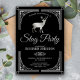 Överraska dina gäster med denna klassiska möhippa inbjudan med silver utsmyckad ram och stilig hjort med stilfull typografi mot en svart bakgrund. Lägg helt enkelt till dina evenemangsuppgifter i denna lättanvända mall för att göra den till en unik inbjudan. Vänd kortet för att avslöja ett vackert silverstjärnmönster på baksidan av kortet.