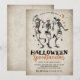Roliga halloween-inbjudningar med vintage-bakgrund, dansande skelett, måne och stjärnor, och en halloween-mall som är lätt att anpassa.