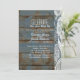 vintage skifferblå lada trä spets lantlig bröllop inbjudningar