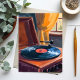Vintage skivinspelare-målning vykort