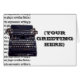 Vintage skrivmaskin mot bakgrund av ord med typsnitt. Lägg till personligen hälsning och ett meddelande inuti.