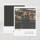 Dela dina spännande nyheter med detta vintageinspirerade förlovningskort och save the date-kort. Ditt favoritfoto är inramat i en klassisk layout i stil med direktfoto, där en förlovningsström överlagras på din bild (som om den vore en del av scenen) och skapar en rolig och festlig stund. En mjuk åldrad filter appliceras på både foto och banderoll för en varm, nostalgisk känsla, medan handstils-personalisering lägger till en naturlig, intim touch för era namn och speciella datum.