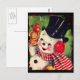 Vintage Snögubbe med rödfågel Vykort