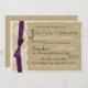 Rustic land inbjudningskort för möhippan med söt snöre och lila band och lappverk. Inbjudan är helt utskriven, ingen riktig inslag.