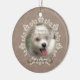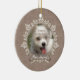 Vintage Snöre Pet Memorial Ornament - anpassa med ditt husfots foton, ditt husdjurs namn och datum - vackert skapat på en subducerad brunt laktusdesign med snöre gränsad ram med genomskinlig hund på baksidan