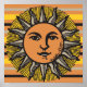 Vintage sol ansikte, träsksten poster
