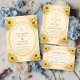 En varm och romantisk bröllopsdesign inspirerad av rustika landsbygdshögtider. Ljus vattenfärg solrosor blommar i hörnen runt en elegant scalloped ram, mot en mjuk pergamentbakgrund som ger designen en tidlös vintage-känsla. Ömtåliga fjärilar och botaniska accenter lägger till en mjuk trädgårdscharm, skapa en glad och naturlig estetik perfekt för solros-älskare och utomhus sommarbröllop.