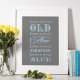 Elegant och vintage design med typografi citat "Något gammalt, något nytt, något lånat, något blått". Använd som välkomstskylt vid brudens bröllopsdusch. Färgerna är kolgrått, vitt och blekt akvablått.