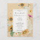 Denna bröllopsduschdesign har en vacker ram av mjuka akvarellsolrosor och andra sommarsblommor på en mjuk smörgul distressad bakgrund. Det är romantiskt med en touch av vintage. Skapad av Simply Farmhouse Press.