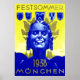 Vintage tysk reseaffisch som lanserade en Tyskland sommarfestival i München 1938.