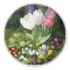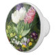 Söt vintage botaniska tryckfärger av vår blommor. Grönt löv med vita tulpaner, rosa och lila hyacinter, höggradiga priroser av färgad, vita snödroppar och gult krocus. Mjuka gröntar och mossy bakgrund.