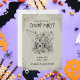 Sätt tonen för en kuslig Halloweenfest med dessa vintageinspirerade spökiga festinbjudningar. Med en detaljerad illustration av ett spökt hus omgivet av spindelnät och kusliga element, fångar denna inbjudan Halloween-skräckens kusliga väsen. Det monokroma svart och beige färgschemat ger en tidlös, klassisk känsla, perfekt för att inbjuda gäster till en natt av spökaktig kul. Perfekt för dem som uppskattar en traditionell Halloween-vib med en touch av vintage-charm.