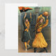 Vintage illustration sportdesign med kvinnliga basketspelare. Flickorna har bokstaven "P" på sina uniformer.