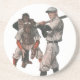 Vintage illustrerar sportens basebolldesign med ett batteri uppåt i fladdermus, en catcher och umpiren som spelar ett lagspel.