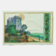 Vintage St. Patrick's Day card från New York Public Bibliotek. Det är ett slott i Irland mot en blek grönt himlar med ett schamprock gräns och text som säger St. Patrick's Day Hälsning.