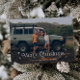 Roligt- och julfotoport med vintagens typsnitt med snurra som säger "God jul" med stjärnor runt. Lägg till ditt familjefoto.