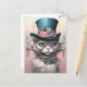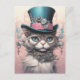 Vintage Steampunk Katt i Blue Tophat Vykort