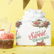 Denna förtjusande julillustration mellan vintage och stil har en återförebild av en kaka med körsbär överst. Det står i texten att ha en söt jul. Det är perfekt för en kock eller älskare av bakade varor!