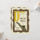 Se till att dina vänner och nära och kära är där på din bröllopsdag med dessa Vintage Style Jazz Save the Date-kort. Kortens stil är inspirerad av en retroaffisch och har en saxofon med noter, två glas som skålar och den fantasifulla frasen "dance eat drink celebrate / live love laugh sing" för ett dekorativt tillägg. Kortens bakgrund är neutral och har ett vintageinspirerat guld- och brunt färgschema.