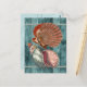 Vintage Soft Brown Seashell Illustrations med Mörk blått träbakgrund. Vackert kort med Vintage.