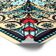 I muterad grönt, akvarier, persikor och turkos, typisk för designperioden i Art nouveau, med ljusa accenter för rosa, en gult sol omgiven av virvelar av paisley, måne och stjärnor, accentuerade med rosa hjärtan. Hand plockade och digitalt färgad.