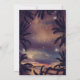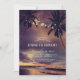 Lila vintage strand solnedgång födelsedagsfest inbjudan med palmer och strängljus.