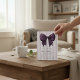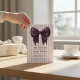 Celebrate the impending arrival of your little one with this chic baby shower invitation. The design features a soft lavender and white vertical stripe pattern, exuding a sense of calm and sophistication. A striking deep purple bow graphic adds a touch of elegance and visual interest to the front. On the reverse, a designated 'Scan Here' area is ready for your QR code, making it effortless for guests to RSVP or find more event details. This invitation is a perfect blend of classic design and modern convenience.