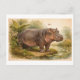 Vintage-Style Hippo Illustration Vykort