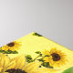 En ljus och glad sträckt väggduk med ett bakgrundsmönster av solrosor med stor vintage solros överlägg