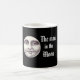 Den klassiske mannen i måne som malar uppifrån. Klar i svart och vitt och säger "Man i måne alla på svart bakgrund.