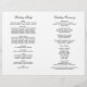 Klassisk svart och vit rullningsskrift skapar ett tidlöst ceremoniprogram med varaktig sofistikation. Utsmyckade vintage-utsmyckningar ramar in era namn och bröllopsdatum på framsidan, med ett vackert koordinerat mönstrat baksida. Innersidorna är helt anpassningsbara för brölloppsdetaljer, ceremonier och ett personligt tack från paret. Programmen trycks på textvikt papper och levereras platta, vilket kräver en enkel mittveck.
