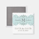 Spara datummagneterna i Bröllop. Anpassa till namn, initial- och bröllop-datum. En del av Blue Swirls-inbjudan. Blåsaligbjudanden är en blandning av eleganter mellan viktorianska blomningar och modern monogram och namn bröllop logotyp, och är perfekt att sätta upp ett gammalt romantiskt tema med blått och taupe som din färg-kombination. Anpassa till namn och bröllop färg med hjälp av Zazzles enkla menykommandon för använda efter att ha valt "Anpassa den". Utformning av Elke Clarke ©2010 Graphics Licensed.