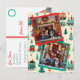 En bedårande julkort med en varm mysig vintage-känsla. Det är en mall för två bilder. Du kan ladda upp din familjs firande julporträtt i det personliga området. Bakgrunden är söta små röda och gröna julgranar och tåg. Kortet är i mjuk vintagegrön, offwhite och röd.