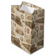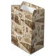 Klassisk presentpåse med resmönster med ånglok, stationsur, järnvägsbyggnader, biljetter och vintage reselement i en gammaldags stil. Perfekt för tågälskare, järnvägsentusiaster, historiefans och alla som älskar nostalgisk resestetik.